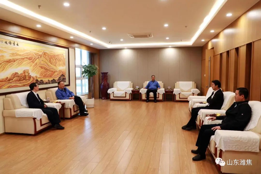 4月21日上午,集團(tuán)董事長劉良玉在薛城園區(qū)運(yùn)營中 心會(huì)見中國工 商銀行棗莊分行行長孫吉軍一行,薛城能源公司總經(jīng)理?xiàng)蠲髡阃?